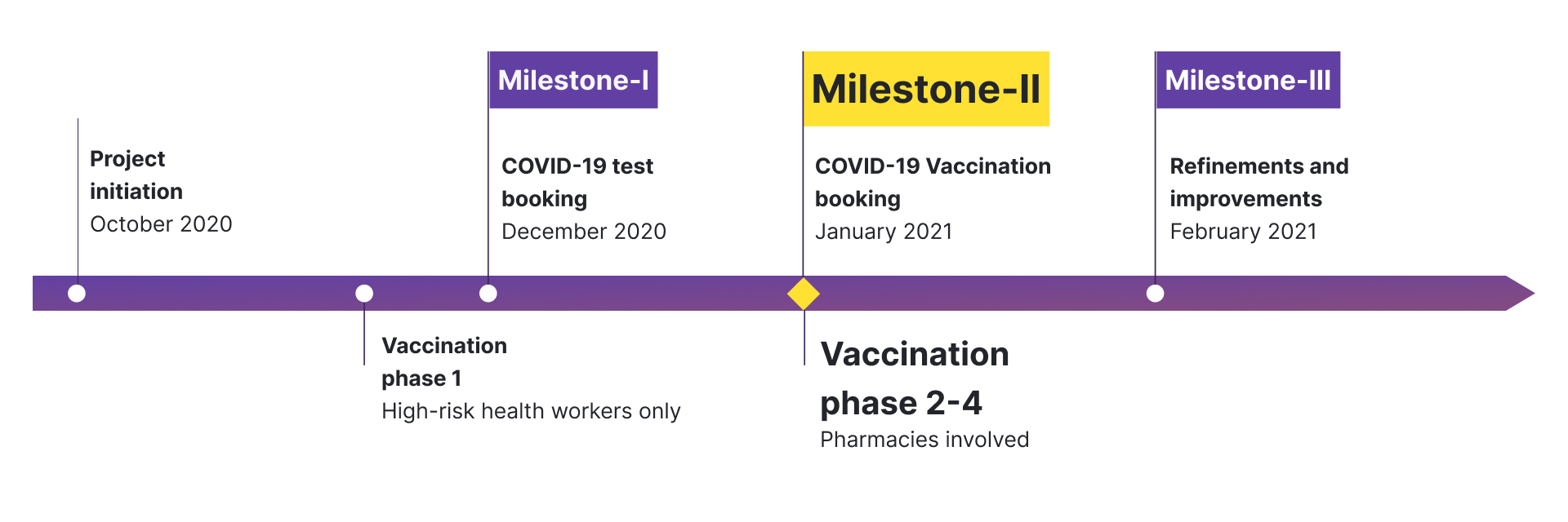 Due to the emergency, time became an important element in the project’s development. Once the he US announced that the COVID-19 vaccines started national-wide started in January 2021, the team aimed to focused in syncing with the phase 2 of the vaccination campaign.