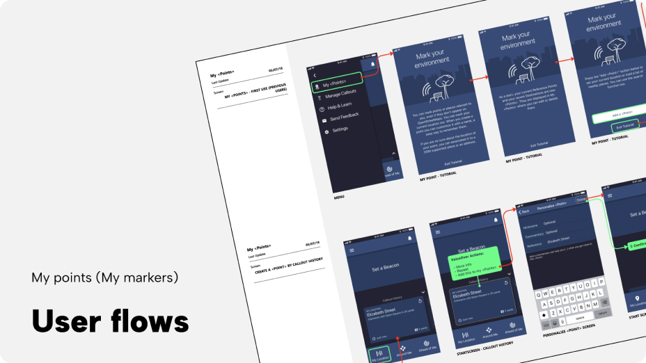 We iterated multiple times to find the right balance between contextual information, the app’s sound elements, and the physical environment. We considered scenarios such as walking along a street, utilizing public transport, or being indoors during the experience.