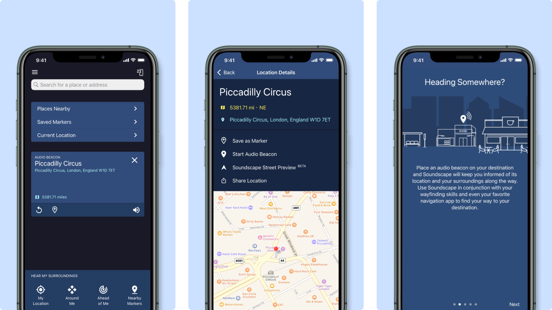 The app leverages 3D sound to offer a new perspective on familiar environments and make exploring new places easier. Using spatial audio, it highlights nearby points of interest, indicates your direction of travel, and provides guidance toward specific destinations.