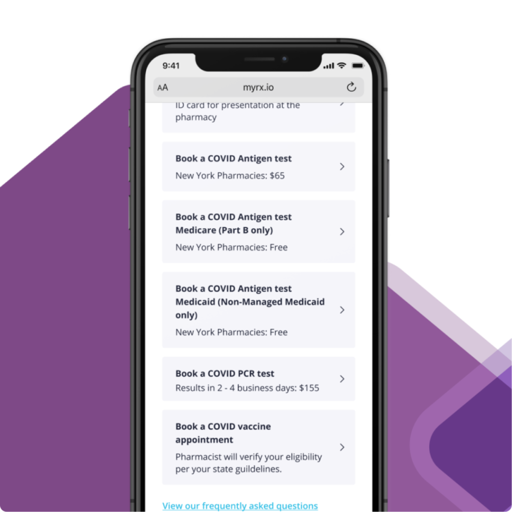 MyRX was a appointment platform that facilitated the scheduling of COVID-19 tests and vaccines for individuals through the US pharmacy community. It was publicly launched in December 2020 in the New York state.